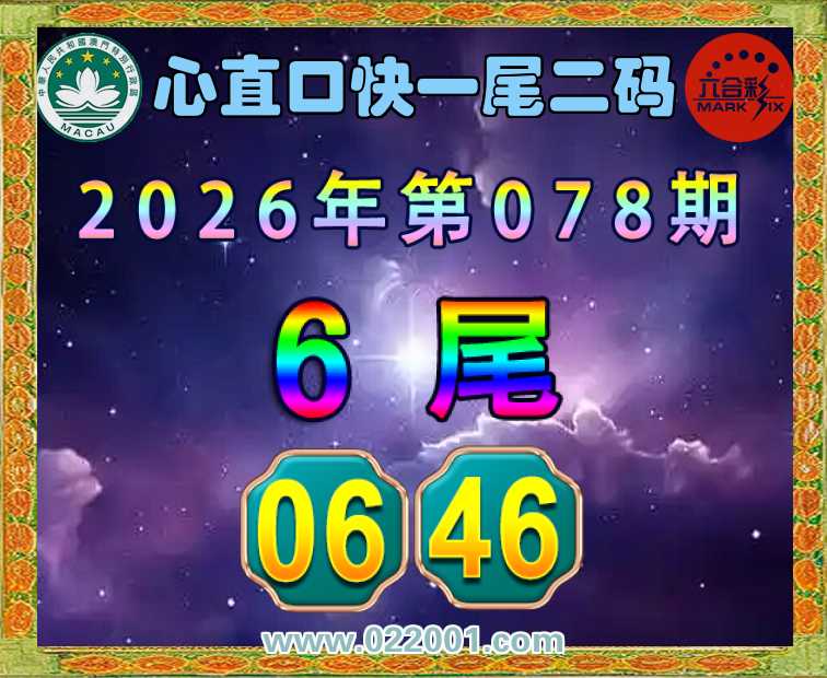 078期: 🍙『心直口快』 🍙一尾二码🍙【6尾主:06.46】开:46准上榜高手